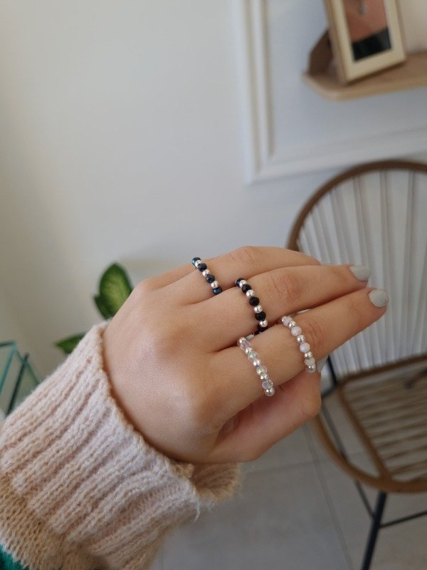 Bolitas de plata de 3 mm y cristales.