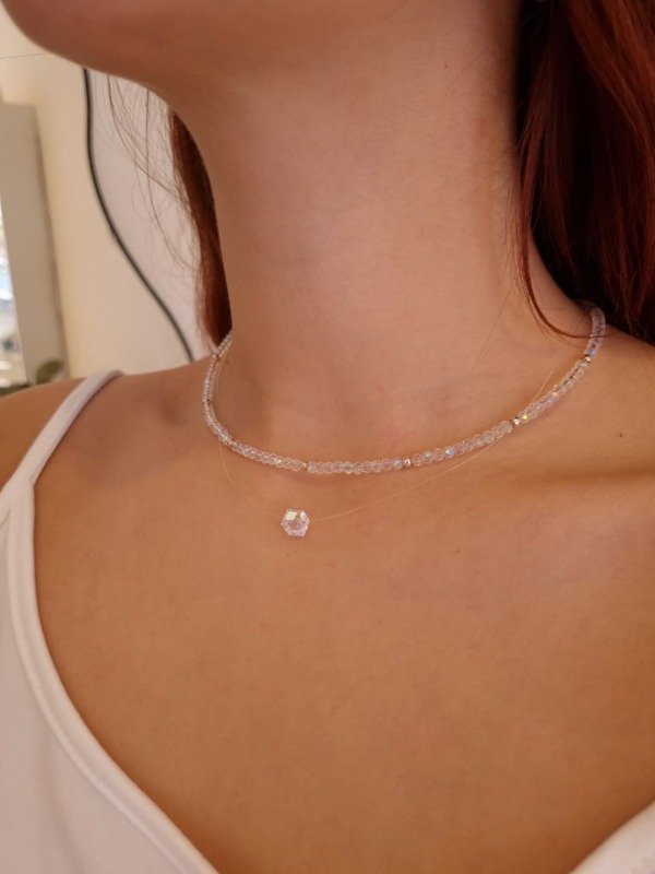 Tanza con cubo Swarovsky 8mm con cierre y alargue plata925